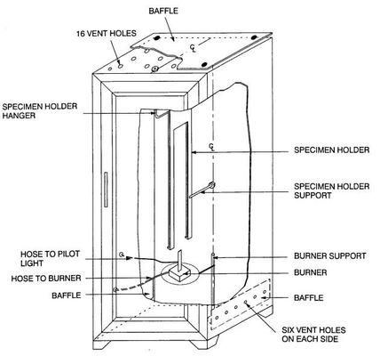 این دستگاه برای ارزیابی مقاومت شعله پارچه، پارچه چند لایه، سازه های پارچه ای مورد استفاده در لباس های گاه به گاه و کمربند کمپینگ استفاده می شود.