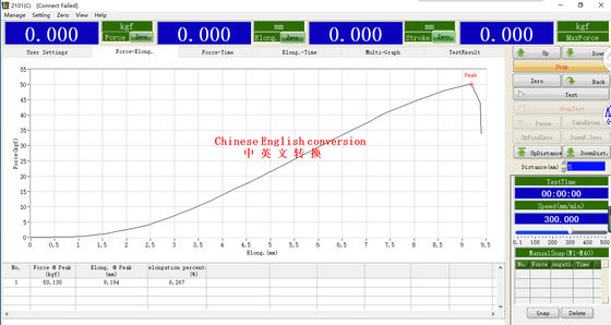 2. رابط کامپیوتری شبکه استاندارد، با نرم افزار اندازه گیری و کنترل حرفه ای ویژه، نمایش زمان واقعی نیرو-جابجایی، نیرو-زمان، جابجایی-زمان، منحنی های تنش-کرنش، محاسبه خودکار حداکثر نیرو، نیروی تسلیم، نیروی متوسط، حداکثر تغییر شکل، نقطه تسلیم، مدول الاستیک و سایر پارامترها، و عملکردهای ویرایش و چاپ گزارش انعطاف پذیر.گزارش می تواند مقدار مقاومت کششی (Mpa) را نمایش و چاپ کند.