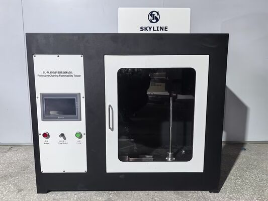 The ISO 15025 Protective Clothing Flammability Tester is designed for measuring limited flame spread properties of protective clothing materials. This professional instrument simulates fire hazard assessment by applying a defined flame to vertically oriented textile specimens.