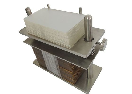 از تعدادی صفحه اکریلیک تشکیل شده است که می توان آنها را در قاب بارگیری مناسب نگهداری کرد.قاب بارگیری از دو صفحه فولادی تشکیل شده است که صفحات اکریلیک بین آنها قرار گرفته است.نمونه آزمایشی بین قطعات پارچه سفید مناسب دوخته شده و در محلول های آزمایشی قلیایی یا اسیدی غوطه ور می شود.