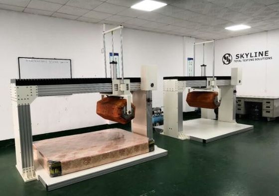دستگاه تست دوام تشک نوع رولاتور با استفاده از سیلندر یا شش ضلعی برای شبیه سازی بدن انسان به طور مداوم بر روی تشک، کیفیت تکیه گاه فنر تشک و جعبه را پس از ضربه های مکرر و حرکت چرخه ای اعمال شده بر روی سطح تعیین می کند.